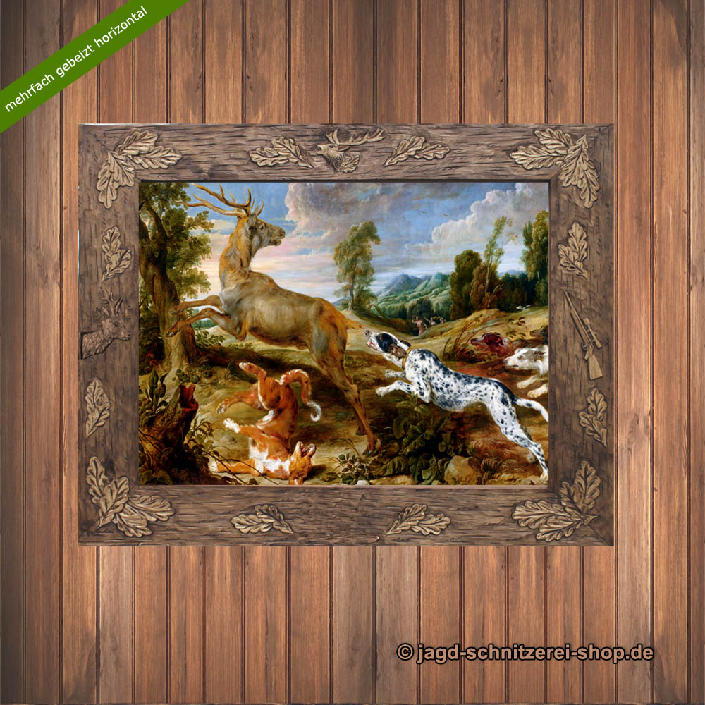 Jägerbrief-Bilderrahmen handgeschnitzt der Jagd-Schnitzerei Peter