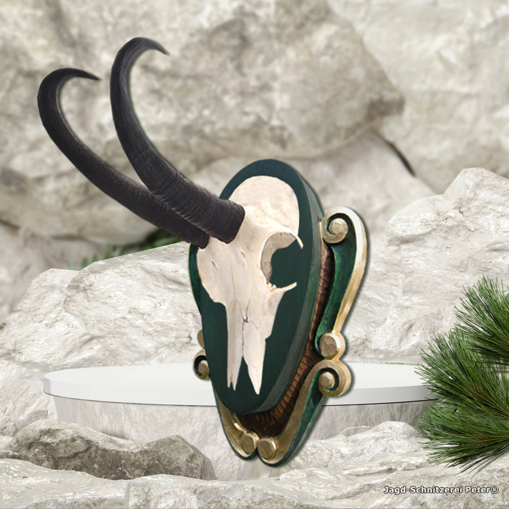 Handgeschnitzte Gamsschilder, ein Unikat der Jagd-Schnitzerei Peter.