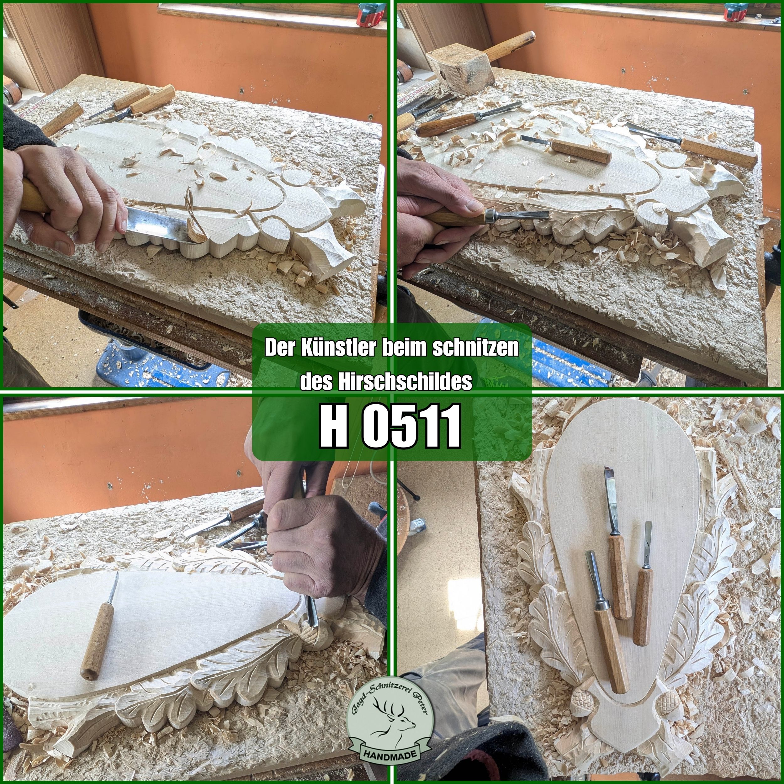 Trophäenschild für Rothirsch H 0511 der Jagd-Schnitzerei Peter