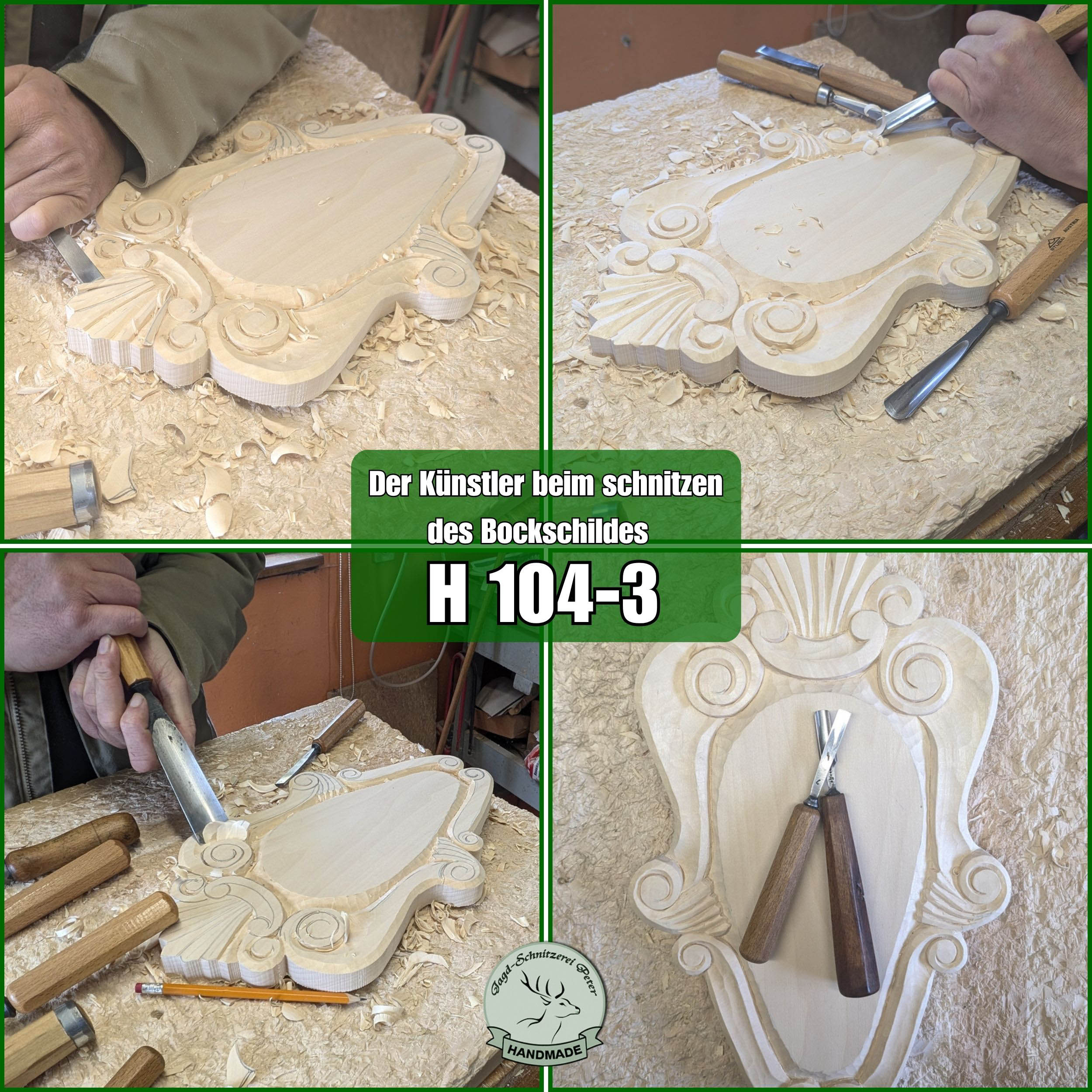 Trophäenschild-Hirsch, handgeschnitztes Trophäenschild, Artikelnummer: H 104-3
